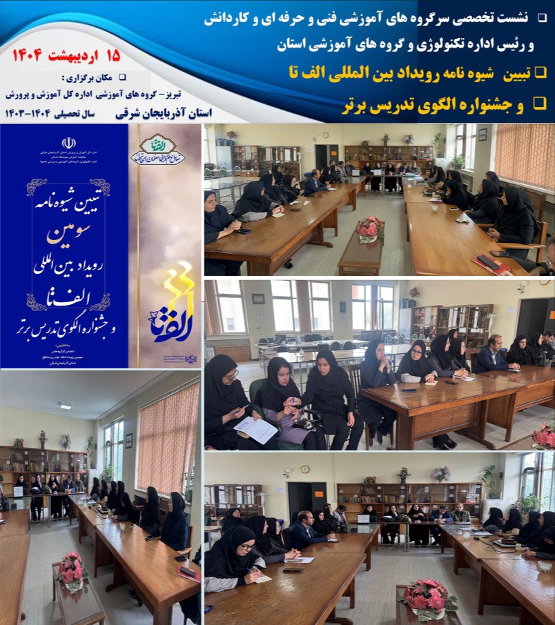 موضوع: «تبیین شیوهنامه رویداد بینالمللی الفتا و جشنواره الگوی تدریس برتر »