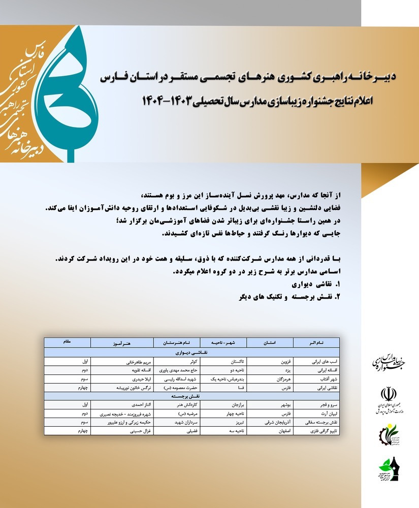 کسب رتبه سوم کشوری هنرآموزان توانمند رشته گرافیک فنی و حرفه ای استان در جشنواره زیباسازی مدارس